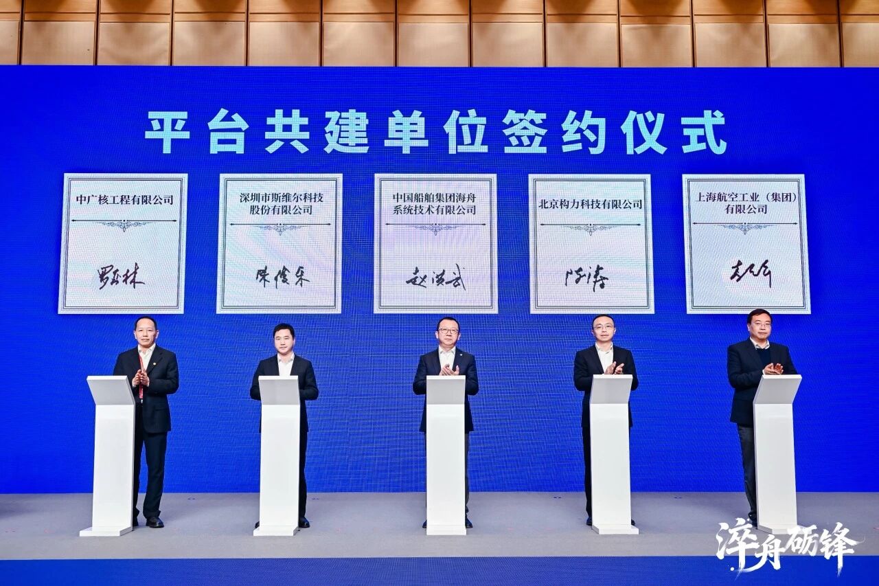 会上,中船集团旗下中船海舟、中国建研院下属构力科技、中建科创下属斯维尔公司、中广核集团下属工程公司等重点央企共同签署了联合共建合作协议。各方约定,将基于通用底座平台建设,在技术共享、创新协同与生态构建等方面深化合作,携手推动产业链协同创新,构建开放共生、合作共赢的工业软件新生态。