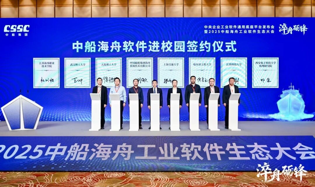 为深化“政产学研用”协同创新,中船海舟与上海交大、大连理工、哈工程等7所国家重点高校完成了软件进校园签约仪式,并携手江科大、江苏海院为珊瑚Marine实践教学基地揭牌,推动人才培养与产业生态建设走深走实,为工业软件发展注入持续动力。