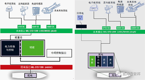 图2 左:在现役舰艇改造时增加能量仓,右:在新建舰艇中安装能量仓